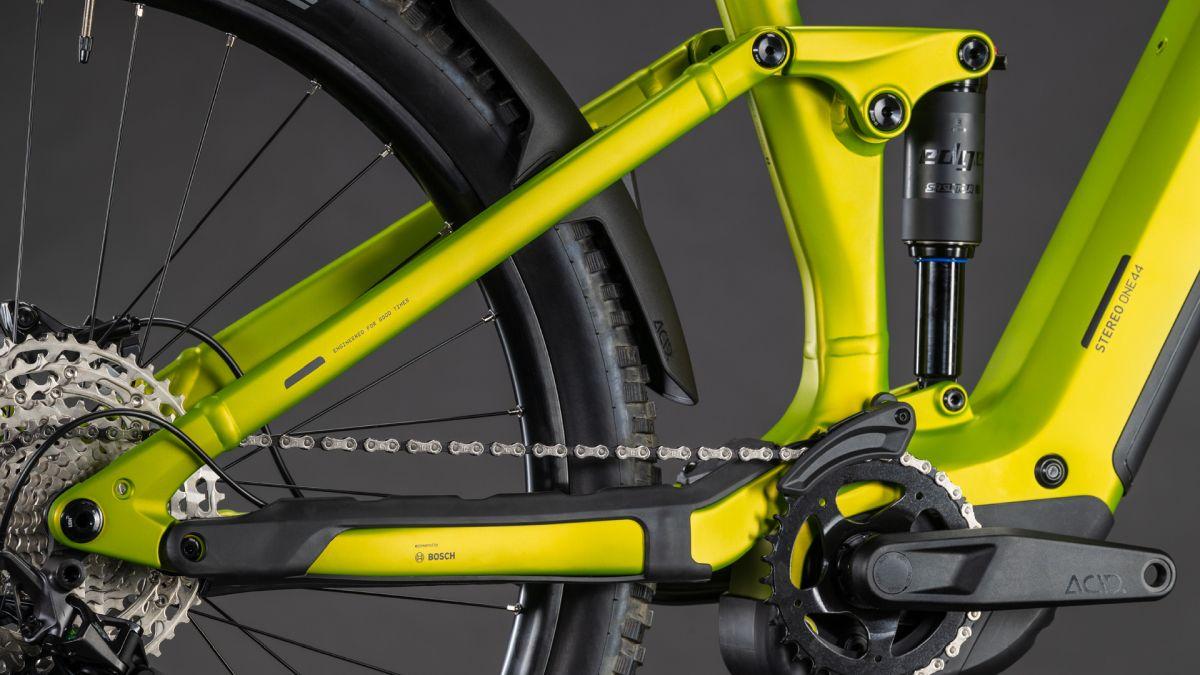 Bei der Entwicklung des Stereo Hybrid ONE44 haben wir uns auf top Performance in Kombination mit hoher Anpassbarkeit konzentriert. Insofern ist dieses Chassis mit einem kompakten 800 Wh PowerTube Akku bestückt, der den leistungsstarken Bosch CX Motor mit bis zu 100 Nm Drehmoment engagiert vorwärtstreibt. Dazu gibt's 140 mm Federweg an der Front und am Heck sowie Montagepunkte für Schutzbleche. Unser Internal Cable Routing spielt der cleanen, eleganten Optik des Rahmens in die Karten. Was noch? Ein UDH Schaltauge für einfache Ersatzteilverfügbarkeit, eine unauffällig und formschön ins Design integrierte Direct Mount Kettenführung – und wer einen Gepäckträger nachrüsten möchte, profitiert von den SIC 2.0 Aufnahmepunkten. Dank Size Split haben wir für so gut wie alle die richtige Passform im Angebot.
