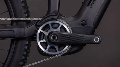 Der Rahmen des Stereo Hybrid ONE77 HPC ist wahrlich eine Klasse für sich, denn hier treffen 170 mm Federweg an der Front und am Heck auf ein Mullet-Set-up mit einem 29 Zoll Vorderrad und 27.5 Zoll Hinterrad. Damit werden Big-Mountain-Trail-Träume wahr! Wie immer bei CUBE maximal detailverliebt konstruiert auch der Rest: Integrated Cable Routing sorgt für einen supercleanen Look. Dazu kommt ein Steuersatz zur Winkelverstellung, mit dem sich das Handling an individuelle Vorlieben und Anforderungen anpassen lässt. Außerdem haben wir den 800 Wh starken PowerTube Akku gleich über dem Bosch CX Motor sauber und formschön ins Carbon-Unterrohr integriert. Für einfachere Ersatzteilverfügbarkeit gibt's ein UDH am Aluminium-Hinterbau – und weil wir auch eine Direct Mount Kettenführung verbaut haben, geht's mit diesem Fully selbst bei schwierigen Bedingungen weiter, weiter und immer weiter.