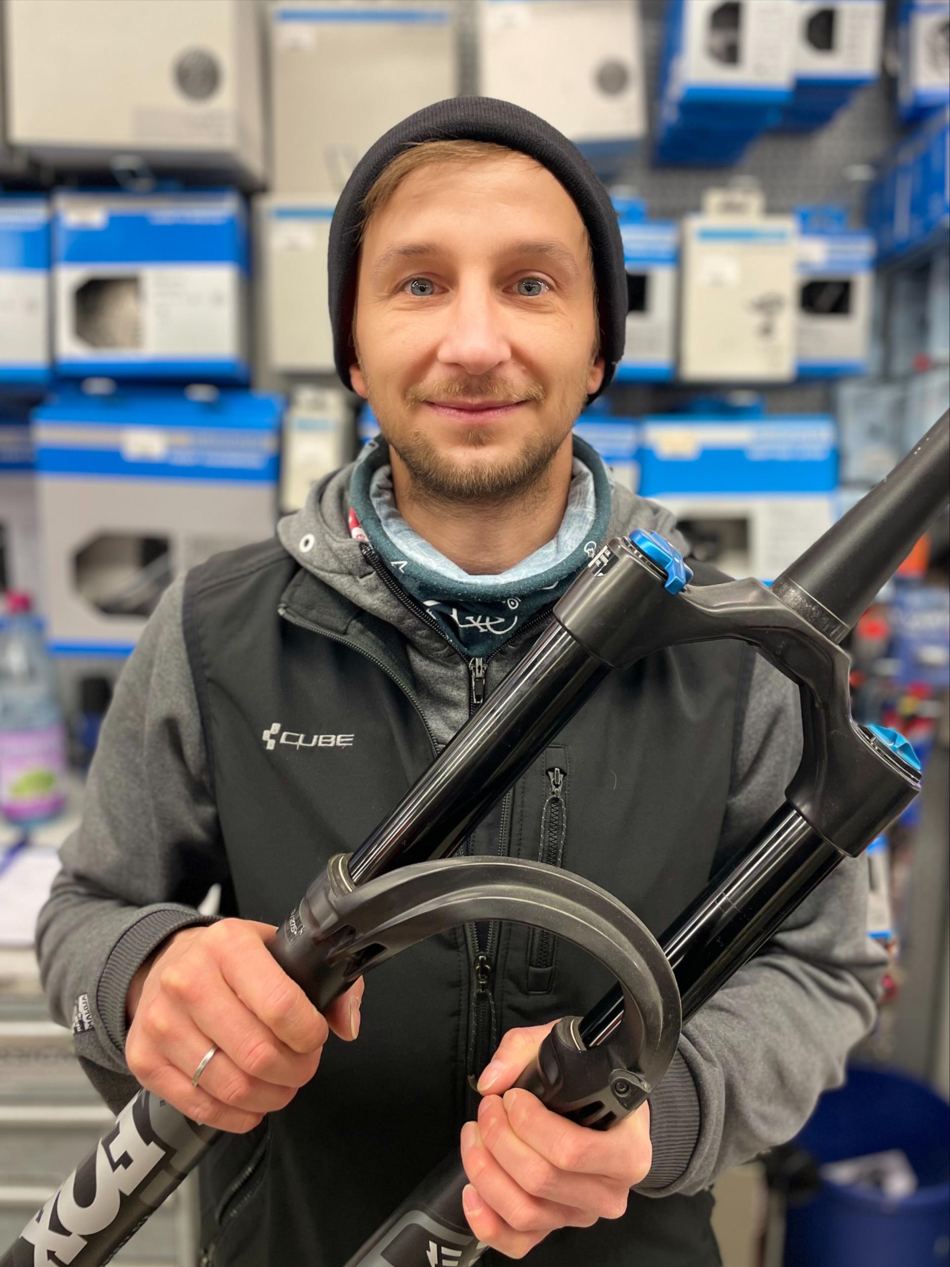 ...unser Allrounder! Schlauch wechseln, Bremse entlüften, Durchsicht und mit Witz und guter Laune verkauft er gerne auch mal ein Bike.