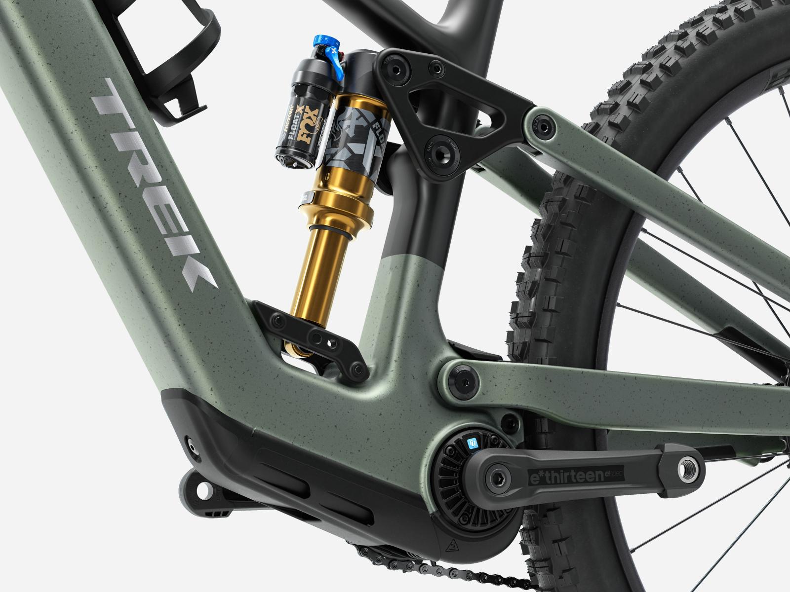Rahmen: OCLV Mountain Carbon, herausnehmbarer Akku, verstellbarer Steuersatzwinkel, verstellbares Hebelverhältnis, geführte interne Zug- und Leitungsverlegung, austauschbare Aluminiumumlenkhebel, austauschbare untere Dämpferaufnahme, Unterrohrschutz, Shuttle-Protektor, ABP, UDH, Boost148, anpassbarer
