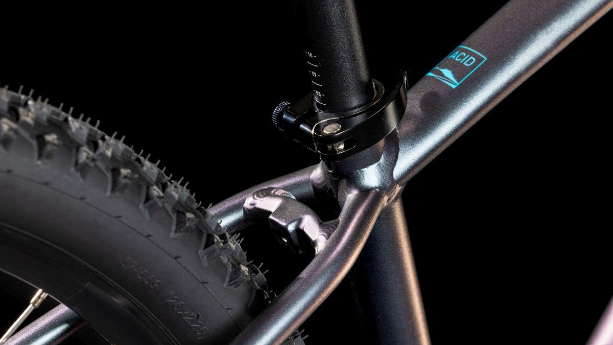 Keine halben Sachen – diesem Motto sind wir auch bei der Entwicklung unserer Junior-Bikes gefolgt. Kein Wunder also, dass beim Chassis des Acid 260 derselbe mechanisch geformte, doppelt konifizierte und hitzebehandelte 6061er-Aluminiumrohrsatz zum Einsatz kommt wie bei unseren Erwachsenenmodellen. In Kombination mit unserer Agile Ride Geometry entstand so ein Rahmen, mit dem Kids viel Selbstvertrauen tanken und ihre Skills effizient ausbauen können. Außerdem haben wir ein einfach austauschbares Schaltauge verbaut, damit ein kleiner Sturz nicht gleich das Ende der Welt beziehungsweise des Rahmens bedeutet.