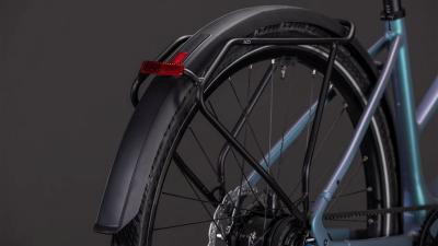 Understatement trifft Klasse – so gesehen beim Trapezrahmen des Editor Hybrid FE. Seine leichte, robuste Aluminiumkonstruktion mit den im Smooth Welding Verfahren gestalteten Hauptrohrverbindungen ergibt ein elegantes Chassis, das wir mit einer leichten und zugleich stabilen Vollcarbongabel ergänzt haben. Um die Optik möglichst clean zu halten, verlaufen die Leitungen im Inneren und der 400 Wh starke Akku wurde ästhetisch ins Unterrohr integriert, was auch noch Platz und Gewicht spart. Dazu kommt ein vielseitiger, robuster Gepäckträger am Heck und ein optionaler Front-Gepäckträger für sämtliches Hab und Gut auf dem Weg durch die City. Außerdem Schutzbleche, helle Lichter und ein praktischer Seitenständer. Kurz: Wir haben an alles gedacht, was im Großstadtdschungel wichtig ist!