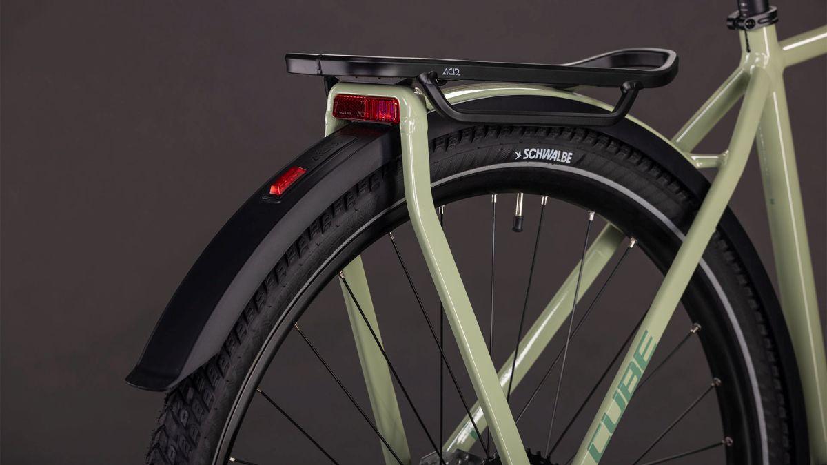 Wir hier bei CUBE sind unter anderem für unsere extreme Liebe zum Detail bekannt. Deshalb haben wir das Kathmandu auch mit dem integrierten Gepäckträger IC 3.0 ausgestattet, der nahtlos und formschön in unsere ACID Schutzbleche übergeht. Dazu gibt's am Hinterrad Aufnahmen für eine Flat Mount Scheibenbremse und einen Seitenständer. Seine cleane, aufgeräumte Optik verdankt das Chassis den im Smooth Welding Verfahren gestalteten Rohrverbindungen und im Inneren verlaufenden Zügen. So viel zum Aussehen. In Sachen Funktion haben wir den Hinterbau mit einer Steckachse versehen und ein konisches Steuerrohr für optimierte Stabilität und Lenkpräzision (selbst bei voller Beladung) verbaut. Also alles da, was es auf Tour braucht – den Rest machst du!
