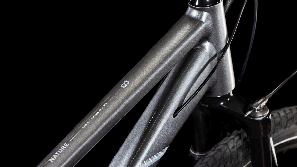 Radfahren soll vor allem eines: Spaß machen. Also haben wir sämtliche Register gezogen, um den Rahmen des Nature so leicht wie möglich zu gestalten, ohne dass die Stabilität verloren geht. Gelungen ist uns das durch doppelt konifizierte Aluminiumrohre und im Smooth Welding Verfahren gestaltete Rohrverbindungen, die für ein cleanes, elegantes Finish sorgen. Weil das Chassis unsere strengen Tests mit Bravour bestanden hat, sind höchste Sicherheit und Robustheit garantiert. Außerdem lässt es genügend Platz für bis zu 50 mm breite Reifen für noch höheren Fahrkomfort und hat ein konisches Steuerrohr für 1a-Lenkpräzision. Kaum sichtbare Verschraubungspunkte für Gepäckträger und Schutzbleche erlauben zudem die einfache Umrüstung. Also alles da, was es für genussvolle Bike-Touren durch die Natur braucht!