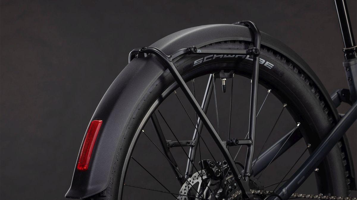 Ein wirklich gutes Bike hat auch wirklich gutes Zubehör – so wie das Stereo Hybrid ONE22 Pro 800 FE, dem wir eine Vollausstattung spendiert haben. Auf dem Gepäckträger findet alles Platz, was auf dem Weg ins Office oder bei der Radtour am Wochenende mit muss. Schutzbleche halten Schmutz und Spritzwasser ab. On top gibt's einen Seitenständer und Lichter. Erstklassige Unterstützung im Vorwärts ist das Spezialgebiet des leistungsstarken Bosch CX Motors mit Purion 200 Display und 800 Wh Akku. Für die wohldosierte Umsetzung dieser Power auf den Untergrund ist die einfach bedienbare Shimano Cues 10-fach Schaltung zuständig. Last, but not least vermitteln griffige Schwalbe 2.6 Zoll Pneus und beherzt zupackende hydraulische Shimano Scheibenbremsen ein sicheres Fahrgefühl. Ein Allrounder, wie er im Buche steht!