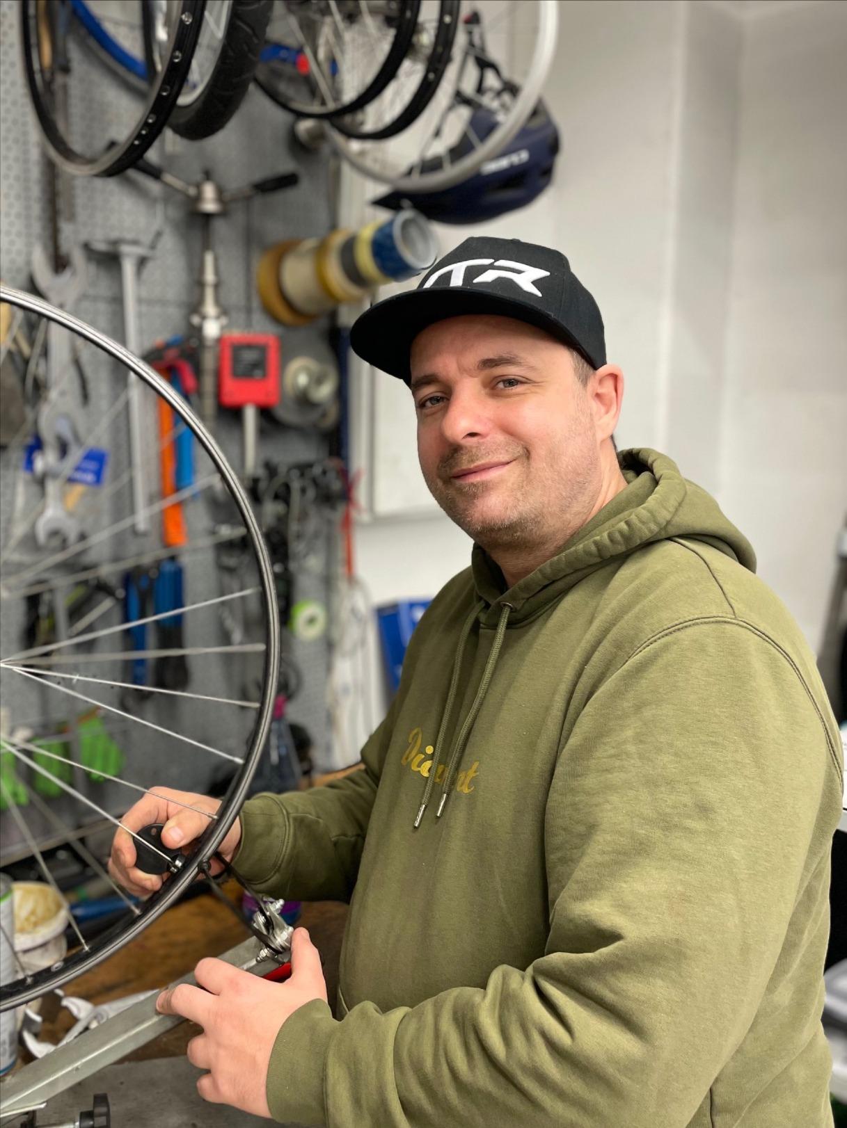 ...unser Allrounder! Schlauch wechseln, Bremse entlüften, Durchsicht und mit Witz und guter Laune verkauft er gerne auch mal ein Bike.