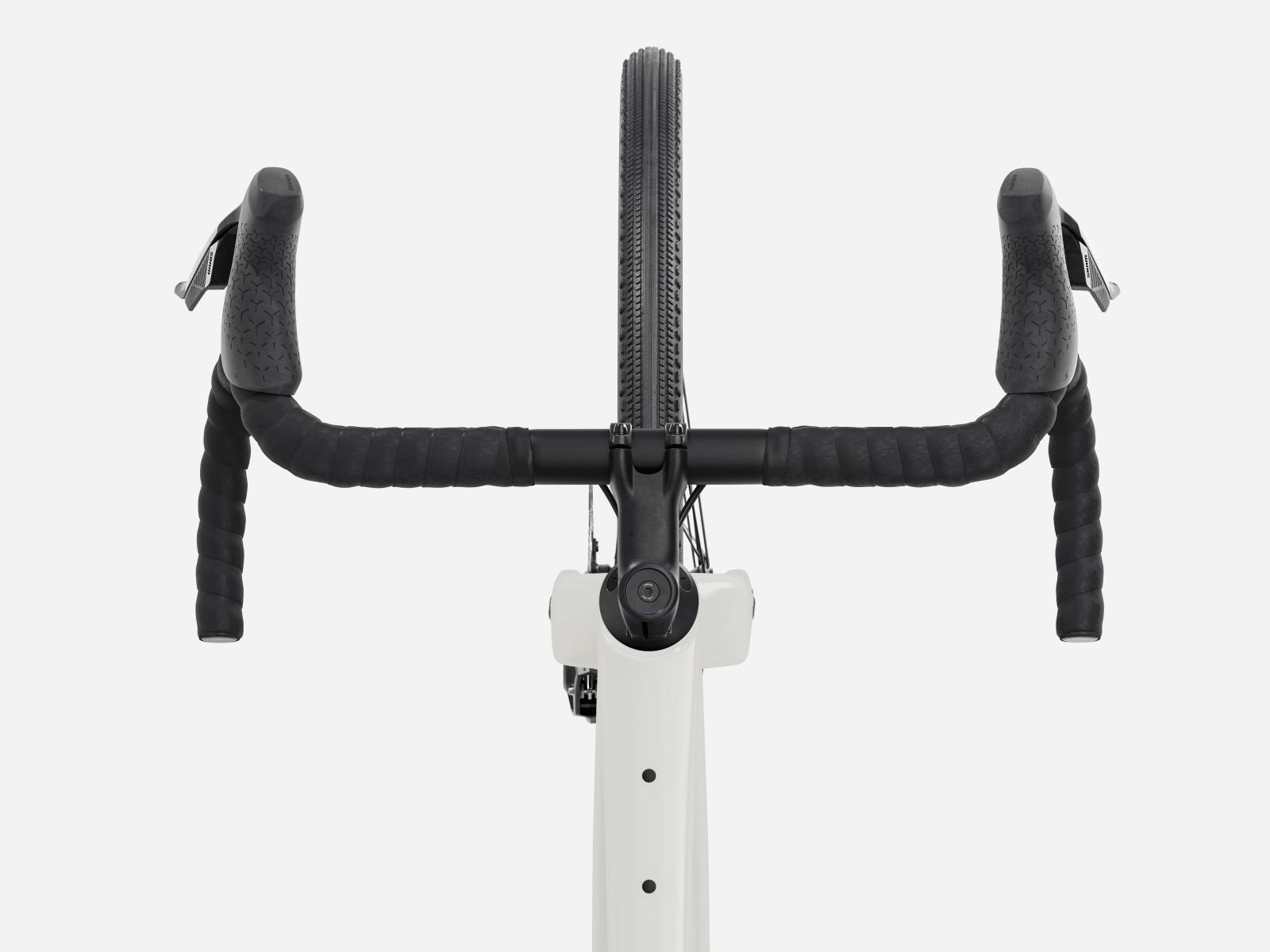 Einen Rahmen aus 500 Series OCLV Carbon samt Carbongabel, Staufach im Unterrohr, Befestigungsmöglichkeiten an Rahmen und Gabel und Platz für Reifen bis 50 mm (wie gemessen). Eine komplett drahtlose SRAM Rival AXS E1 1x13-Schaltung, hydraulische Scheibenbremsen, eine Carbonsattelstütze und Bontrager Paradigm Comp Tubeless-Ready-Laufräder mit 42 mm breiten Reifen.