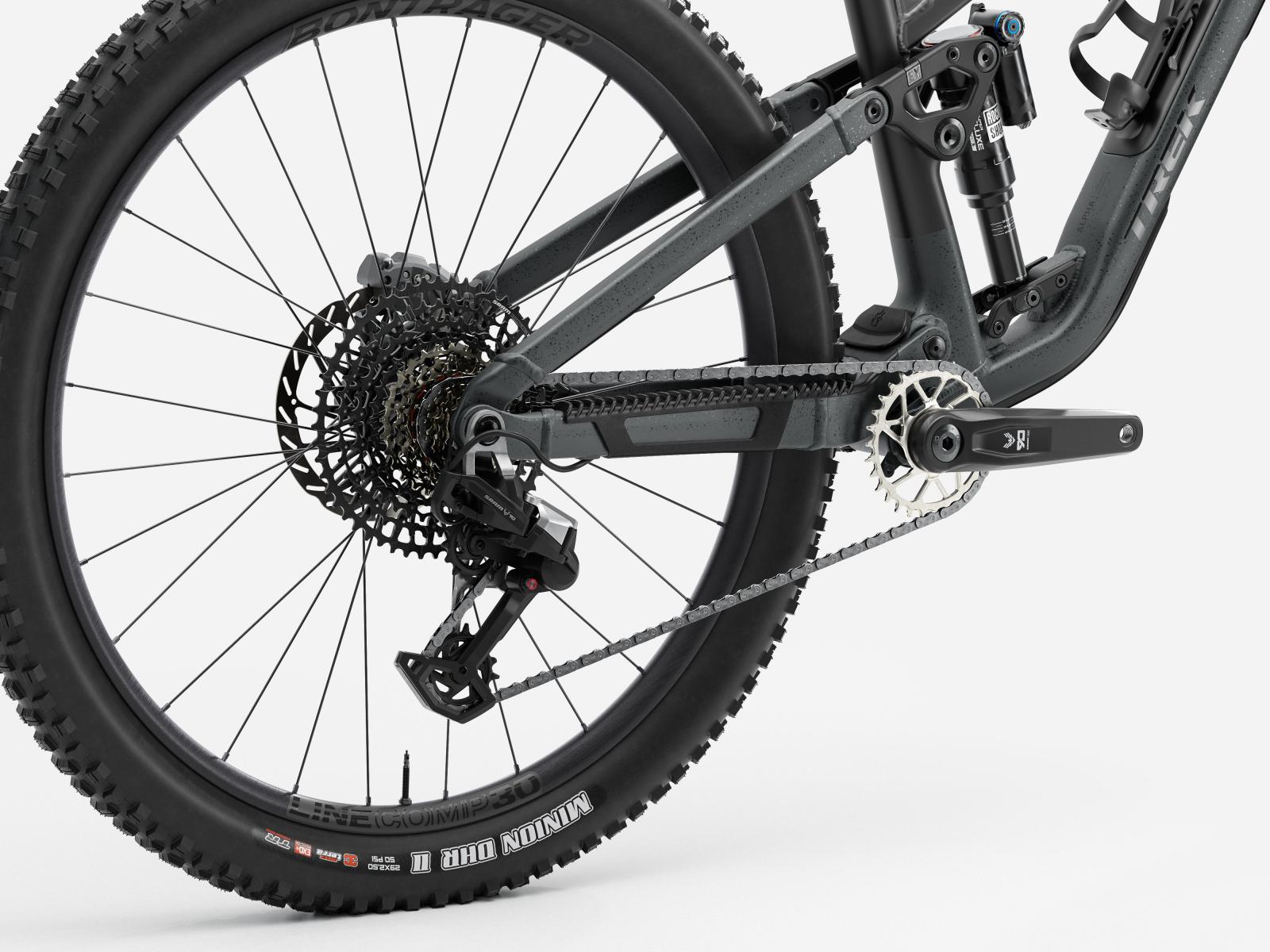 Das Fuel EX 9 Eagle 90 ist ein extrem souveränes Trailbike, mit dem du jedes Terrain souverän meisterst. Es basiert auf einem Rahmen aus Alpha NEXT Platinum Aluminium, der für ein vertrauenerweckendes Handling auf allen Trails mit einer RockShox Lyrik Ultimate 150-mm-Federgabel und einem RockShox Deluxe Ultimate RC2T 145-mm-Dämpfer ausgestattet ist. Die mechanische SRAM Eagle 90 Transmission wechselt selbst unter Last geschmeidig die Gänge, während die SRAM Maven Bronze 4-Kolben-Scheibenbremsen auch nach langgezogenen, steilen Abfahrten noch kraftvoll zupacken.