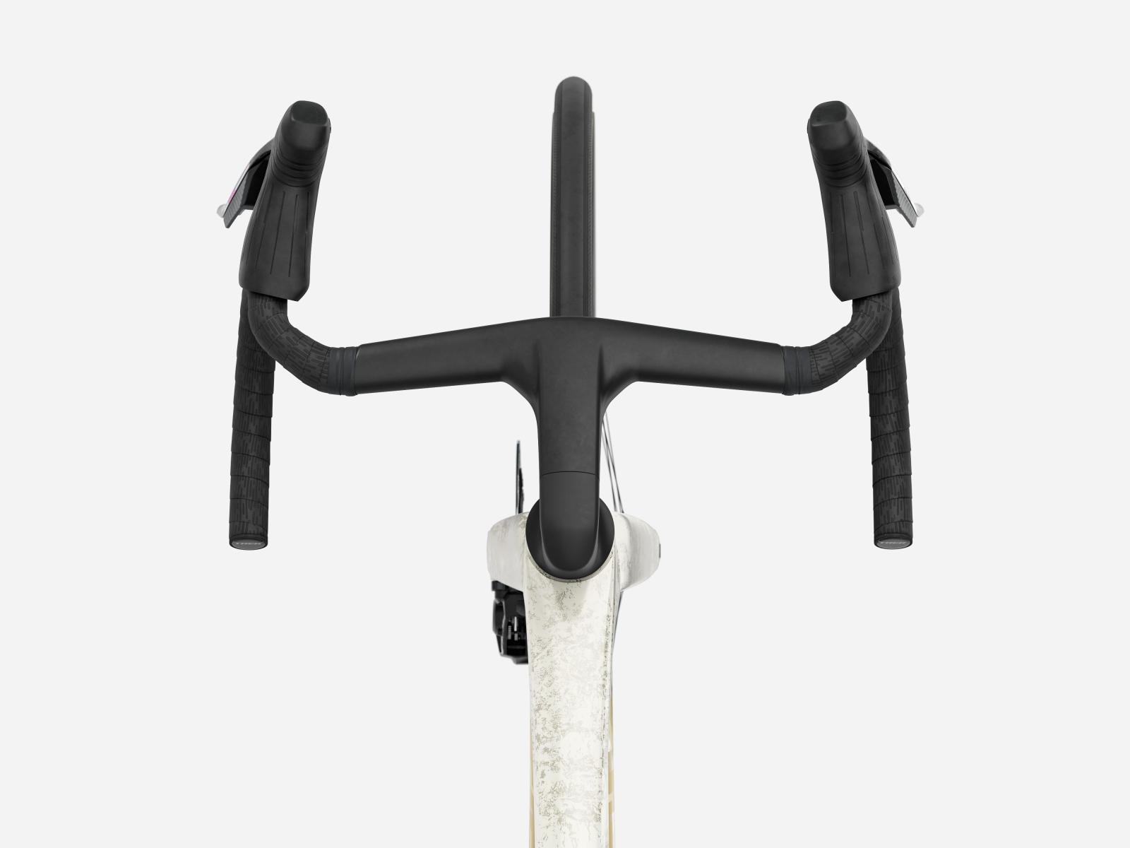 Lenker: Trek Aero RSL Road integrierte Lenker/Vorbau-Einheit, OCLV Carbon, Race Fit, 80 mm Reach, 124 mm Drop, 35 cm Oberlenkerbreite, 38 cm Unterlenkerbreite, 80 mm Vorbaulänge