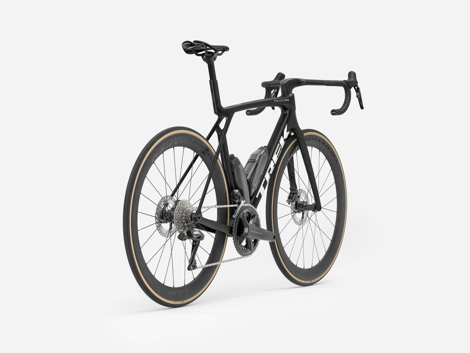Einen unglaublich leichten, aerodynamisch optimierten Rahmen aus unserem besten 900 Series OCLV Carbon samt IsoFlow-Komforttechnologie und Watt-sparenden RSL Aero Trinkflaschen und Flaschenhaltern. Einen blitzschnell schaltenden Shimano Ultegra Di2 2x12-Antrieb, der sich individuell programmieren lässt, während das verbaute, weit verbreitete Universalschaltauge (UDH) die Ersatzteilbeschaffung erleichtert. Abgerundet wird die Ausstattung von schlauchlosen Bontrager Aeolus Pro 51 Carbonlaufrädern und einer einteiligen Trek Aero RSL Lenker/Vorbau-Einheit.