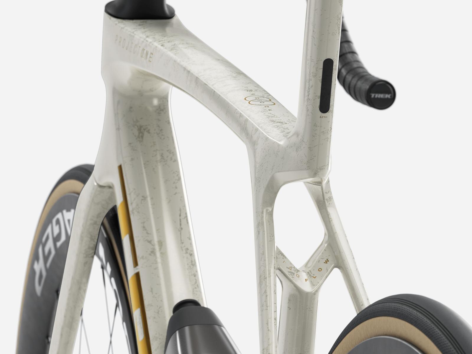Einen unglaublich leichten, aerodynamisch optimierten Rahmen aus unserem besten 900 Series OCLV Carbon samt IsoFlow-Komforttechnologie und Watt-sparenden RSL Aero Trinkflaschen und Flaschenhaltern. Einen blitzschnell schaltenden Shimano Ultegra Di2 2x12-Antrieb, der sich individuell programmieren lässt, während das verbaute, weit verbreitete Universalschaltauge (UDH) die Ersatzteilbeschaffung erleichtert. Abgerundet wird die Ausstattung von schlauchlosen Bontrager Aeolus Pro 51 Carbonlaufrädern und einer einteiligen Trek Aero RSL Lenker/Vorbau-Einheit.