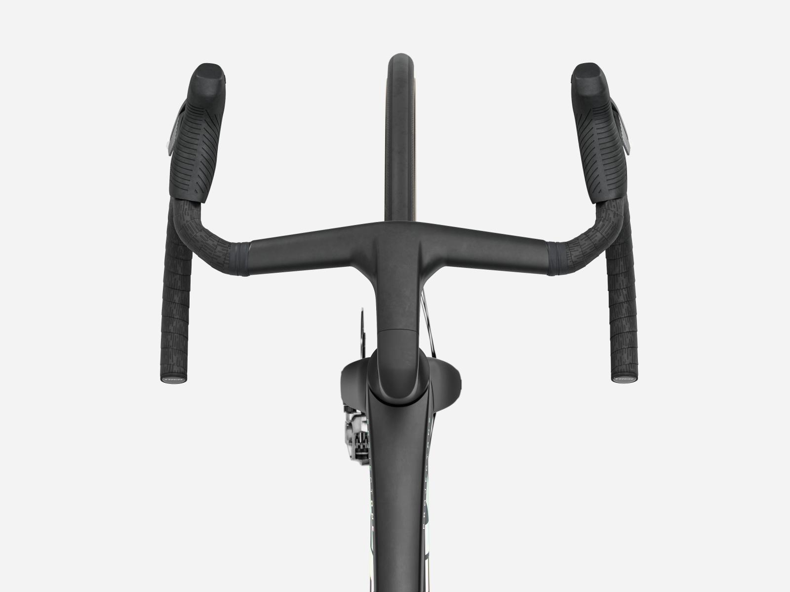 Die neue einteilige Lenker/Vorbau-Einheit ist leichter, aerodynamischer und ergonomischer als die Vorgängerversion. Darüber hinaus ermöglicht der im Vergleich zum Unterlenker 3 cm schmalere Oberlenker die Anpassung der Positionierung auf dem Bike, um entweder in der Oberlenkerposition von einer besseren Aerodynamik zu profitieren oder im Unterlenker mehr Kraft aufs Pedal zu bringen.