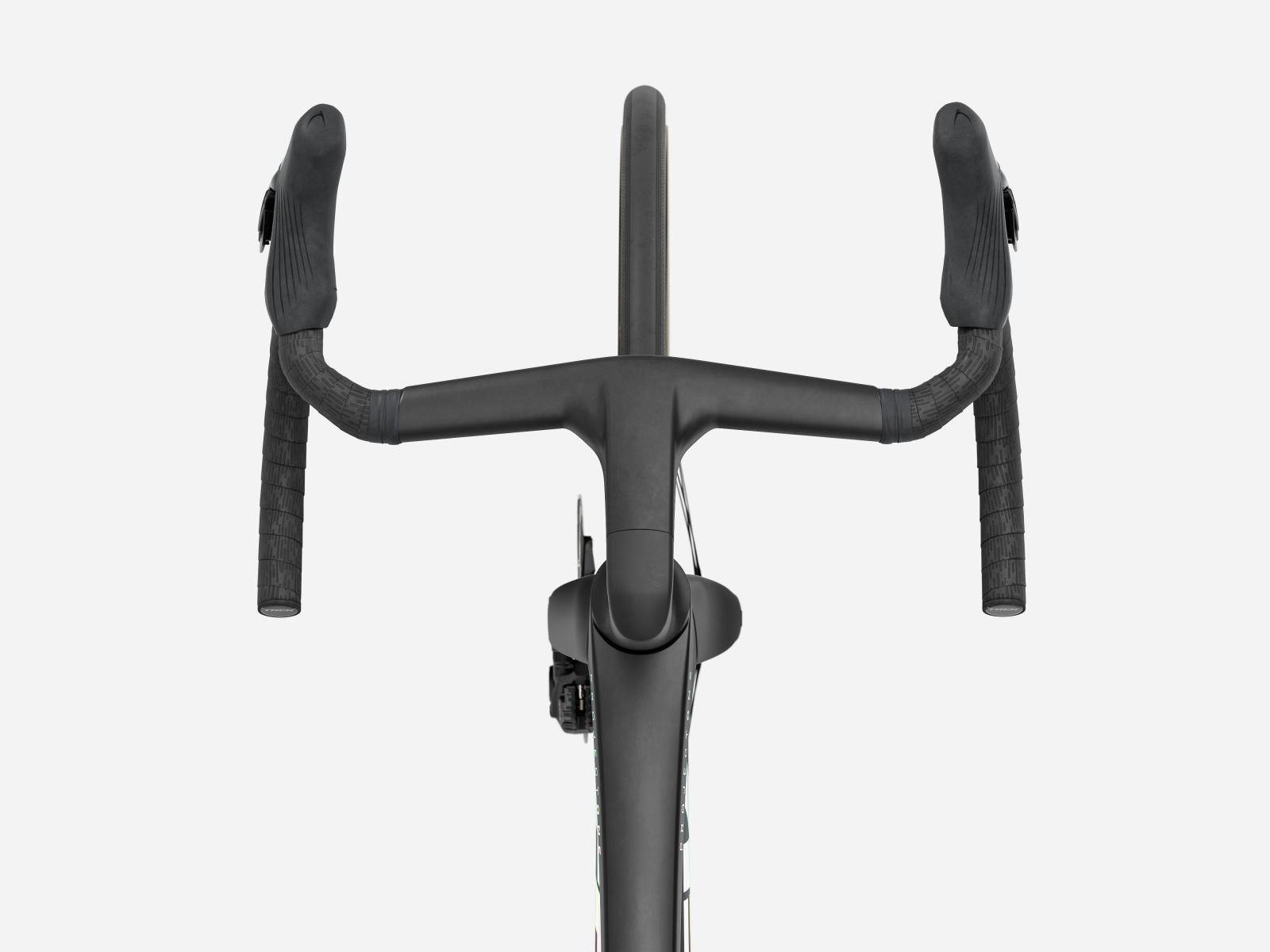 Die neue einteilige Lenker/Vorbau-Einheit ist leichter, aerodynamischer und ergonomischer als die Vorgängerversion. Darüber hinaus ermöglicht der im Vergleich zum Unterlenker 3 cm schmalere Oberlenker die Anpassung der Positionierung auf dem Bike, um entweder in der Oberlenkerposition von einer besseren Aerodynamik zu profitieren oder im Unterlenker mehr Kraft aufs Pedal zu bringen.