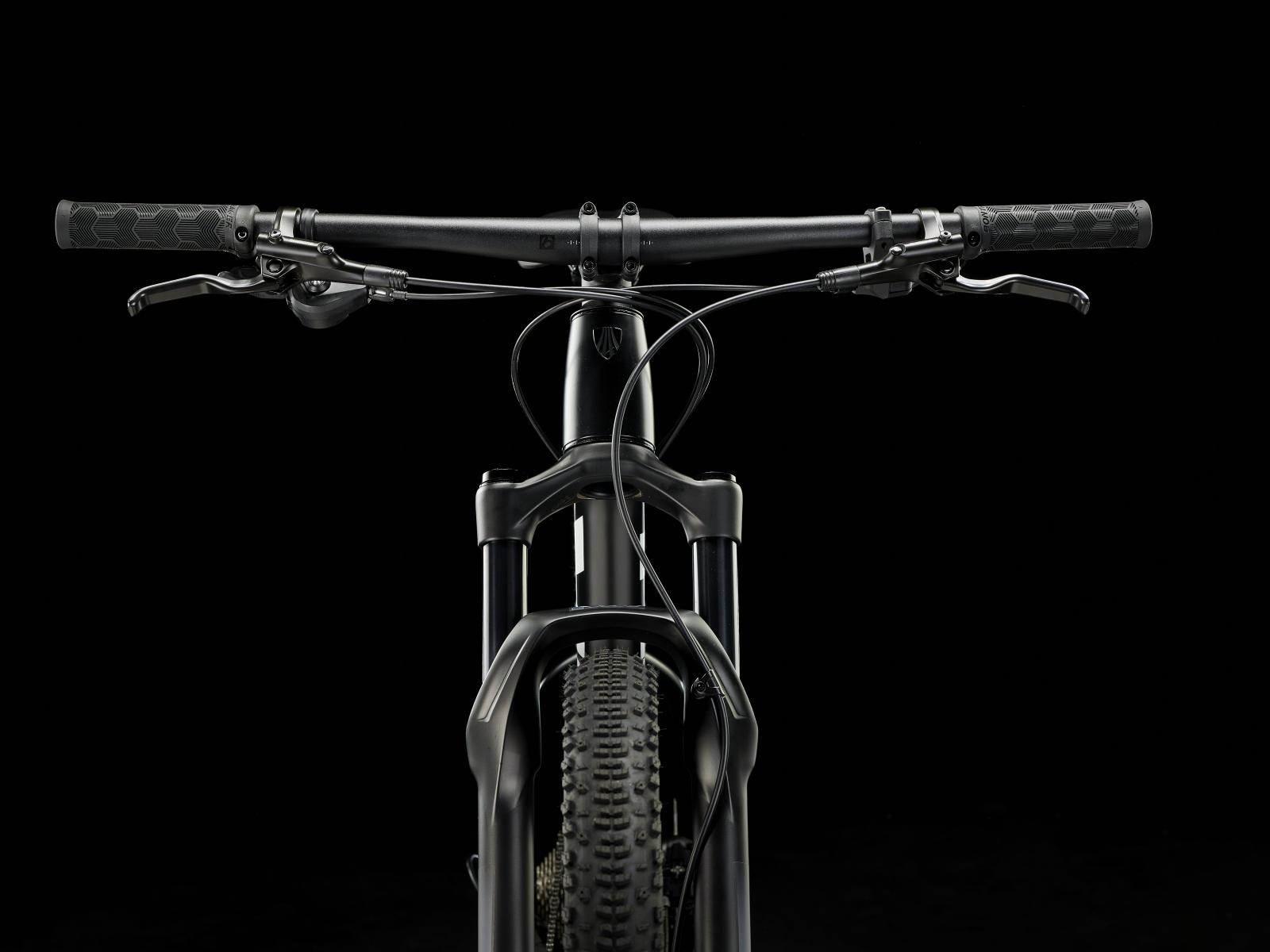 Einen leichten Hardtail-Rahmen aus Alpha Platinum Aluminium mit moderner XC-Geometrie samt 148 mm Boost-Einbaubreite für mehr Steifigkeit und Stabilität unter Last sowie eine trailglättende RockShox Judy Silver Gabel mit 120 mm Federweg, Solo Air Luftfeder und TurnKey-Lockout. Dazu bekommst du einen sauber schaltenden 12fach-Antrieb mit Shimano XT/Deore Komponenten, Bontrager Kovee Tubeless-Ready-Laufräder, eine Bontrager Line Variosattelstütze mit interner Zugführung und hydraulische Scheibenbremsen.