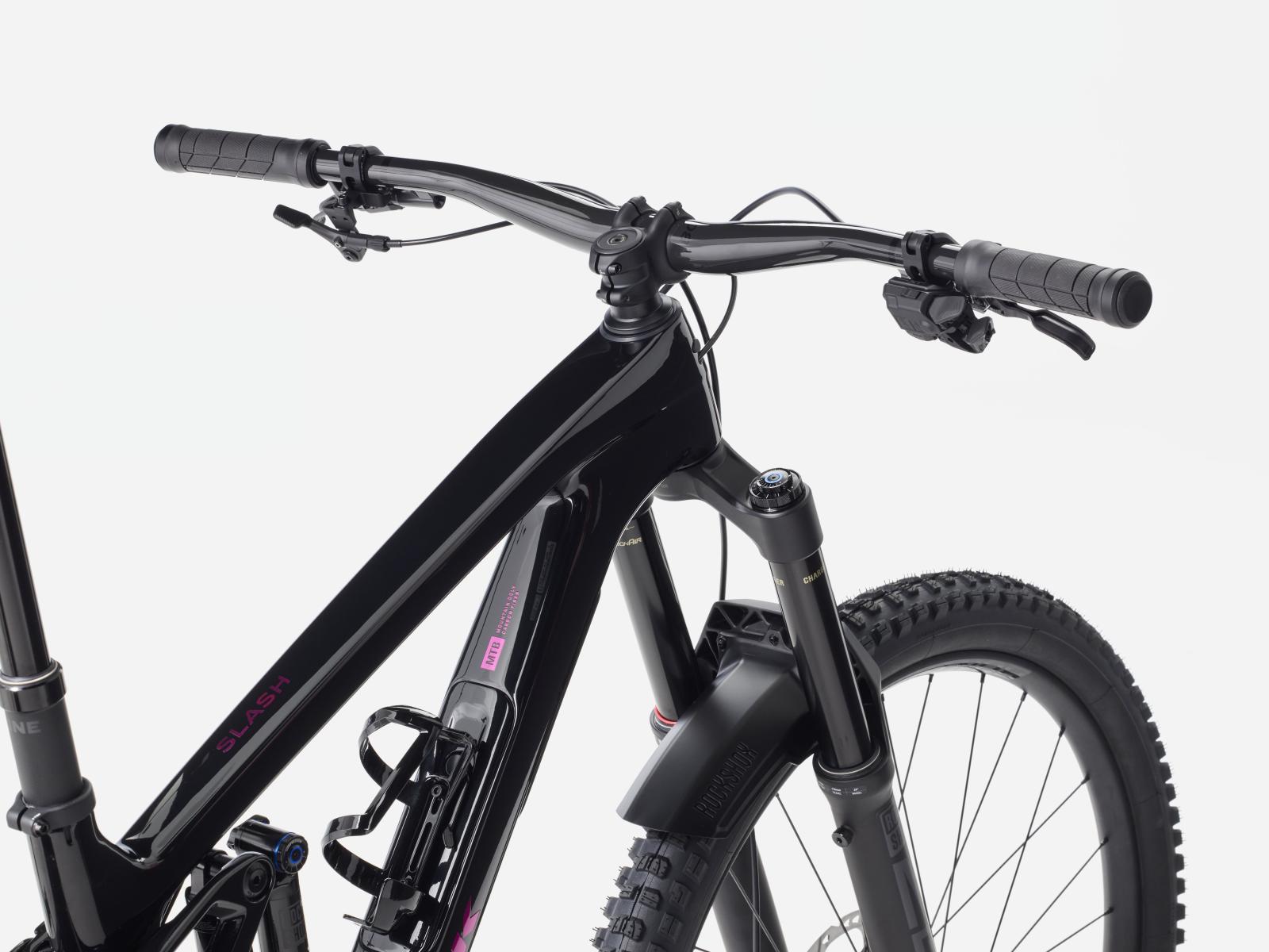 Einen Rahmen aus OCLV Mountain Carbon mit High-Pivot-Fahrwerk und Rahmenstaufach. Dazu gibt es 170 mm vorderen und hinteren Federweg dank RockShox ZEB Select+ Gabel mit DebonAir Federung und Charger 3 RC2 Dämpfung und RockShox Vivid Select+ Hinterbaudämpfer. Shimanos brandneue XT Di2 Drahtlosschaltung mit breiter Übersetzung, eine Bontrager Line Variosattelstütze und eine Mullet-Laufradkonfiguration – mit 29 Zoll vorn, 27,5 Zoll hinten – mit Bontrager Line Comp 30 Tubeless-Ready-Laufradsatz samt Rapid Drive 108 Nabe.