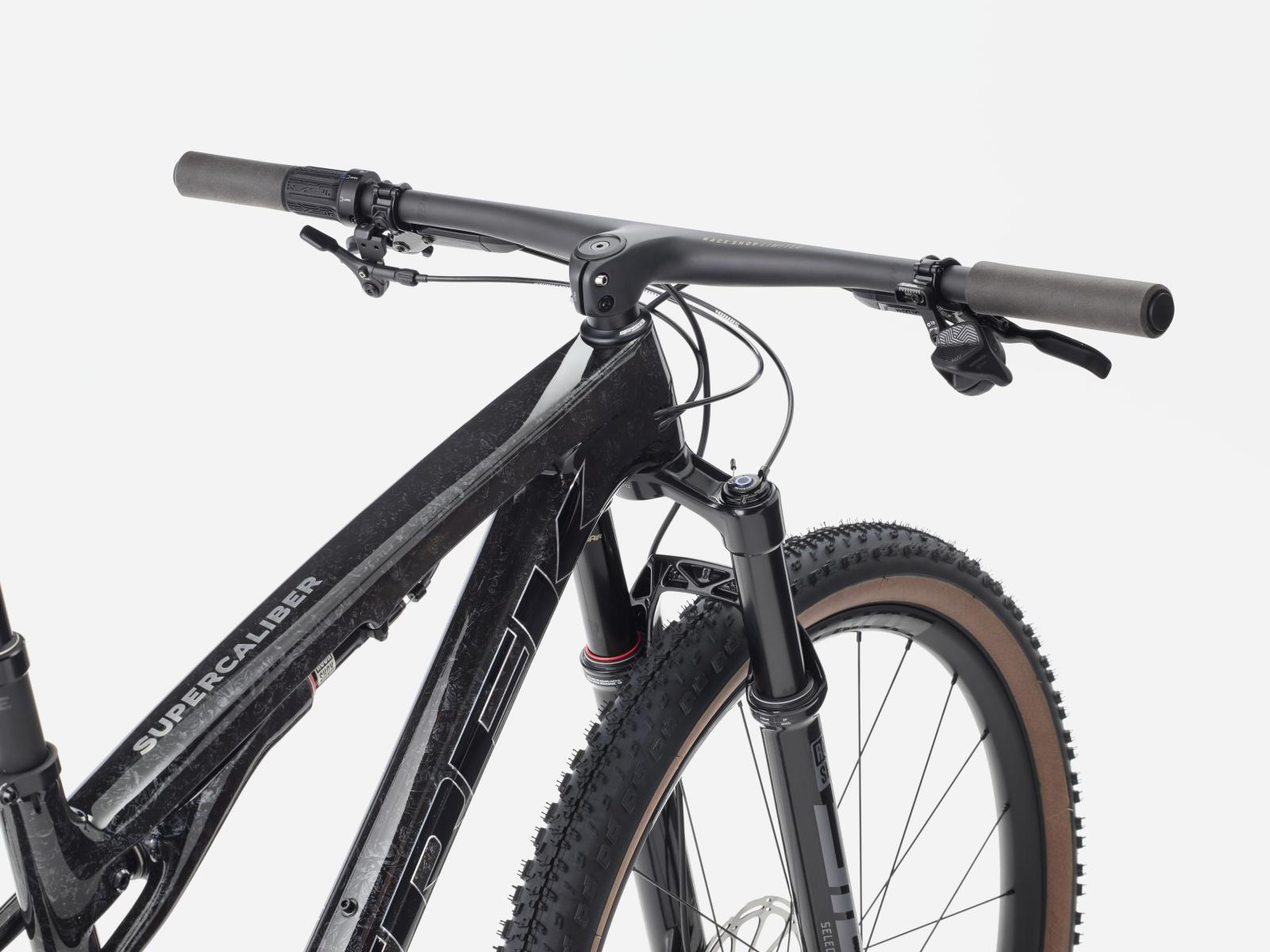 Einen federleichten Rahmen aus hochmoduligem SLR OCLV Mountain Carbon mit moderner XC-Geometrie. Außerdem bekommst du eine RockShox SID Select+ 110-mm-Federgabel mit DebonAir Federung und Charger Race Day Dämpfung und einen RockShox SIDLuxe IsoStrut 80-mm-Hinterbaudämpfer – natürlich komplett mit Remote-Lockout. Eine komplett drahtlose elektronische SRAM X0 AXS 12fach-Transmission, Bontrager Kovee Elite 23 Carbonlaufräder, eine integrierte Bontrager RSL Lenker/Vorbau-Einheit aus Carbon, eine Bontrager Line Variosattelstütze und hydraulische SRAM Level Silver 4-Kolben-Scheibenbremsen.