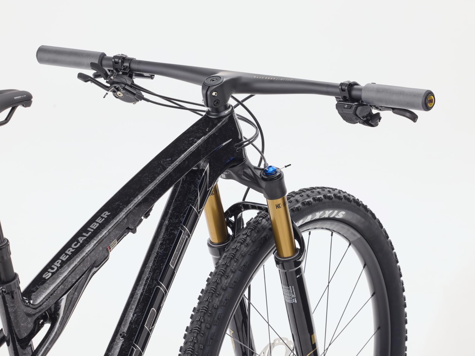 Einen federleichten Rahmen aus hochmoduligem SLR OCLV Mountain Carbon mit moderner XC-Geometrie. Dazu gibts eine FOX Factory 34 SL Step-Cast 110-mm-Federgabel mit Float EVOL Luftfederung, GRIP SL 2-Positionen-Dämpfung und Dual-Remote-Lockout und einen RockShox SIDLuxe IsoStrut-Dämpfer mit 80 mm Federweg. Shimanos brandneuer drahtloser XT Di2 12fach-Antrieb, Bontrager Kovee Elite 30 Carbonlaufräder, eine integrierte Bontrager RSL Lenker/Vorbau-Einheit aus Carbon, eine Bontrager Line Variosattelstütze und hydraulische Shimano XT M8200 Scheibenbremsen runden das Ausstattungspaket ab.