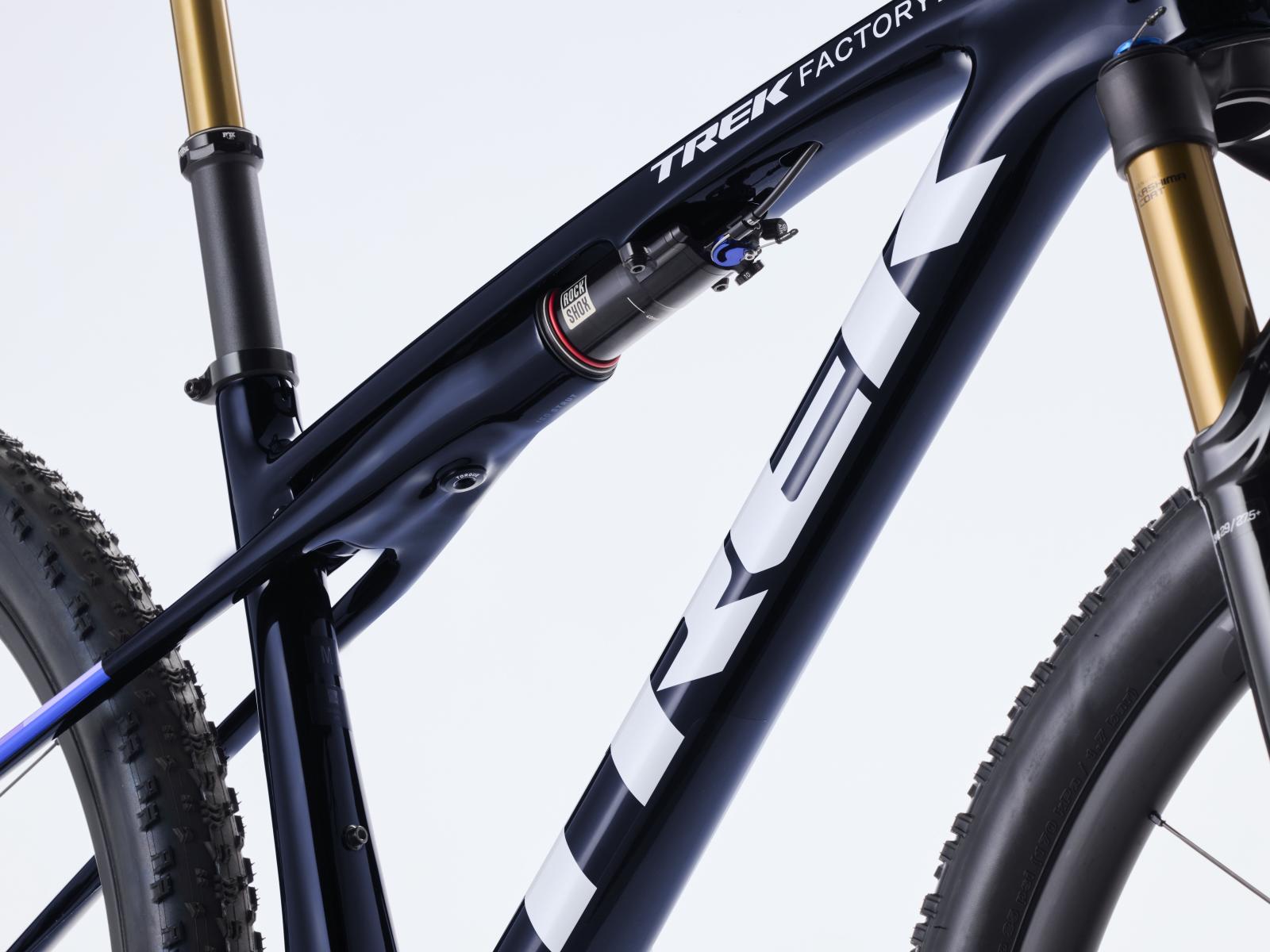 Einen federleichten Rahmen aus High-Modulus SLR OCLV Mountain Carbon mit moderner XC-Geometrie. Zudem eine Fox Factory 34 SL Step-Cast 110-mm-Federgabel mit Float EVOL Luftfederung, GRIP SL 2-Positionen-Dämpfung und Dual Remote-Lockout sowie einen RockShox SIDLuxe IsoStrut-Dämpfer mit 80 mm Federweg. Ein brandneuer drahtloser Shimano XTR Di2 12fach-Antrieb, Bontrager Kovee RSL Carbonlaufräder, eine integrierte Bontrager RSL Lenker/Vorbau-Einheit aus Carbon, eine FOX Transfer SL Variosattelstütze und hydraulische Shimano XTR M9200 Scheibenbremsen runden das Ausstattungspaket ab.