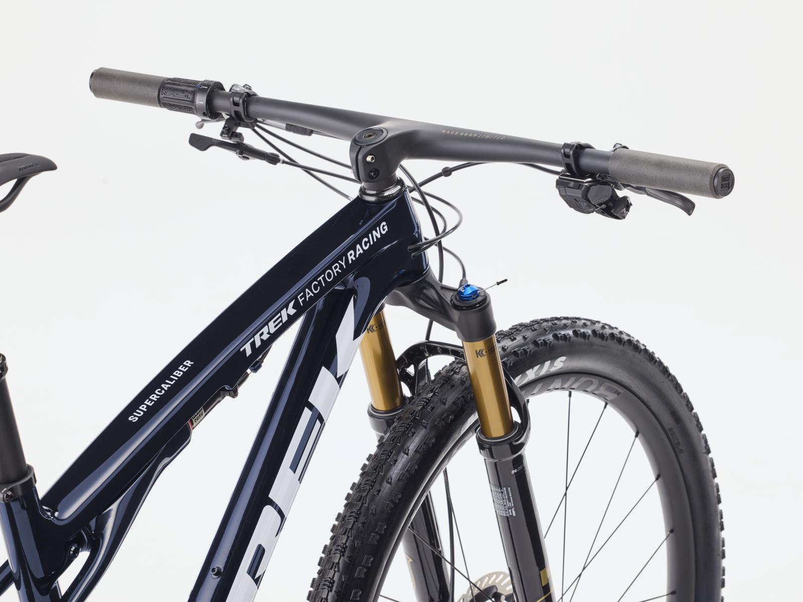 Einen federleichten Rahmen aus High-Modulus SLR OCLV Mountain Carbon mit moderner XC-Geometrie. Zudem eine Fox Factory 34 SL Step-Cast 110-mm-Federgabel mit Float EVOL Luftfederung, GRIP SL 2-Positionen-Dämpfung und Dual Remote-Lockout sowie einen RockShox SIDLuxe IsoStrut-Dämpfer mit 80 mm Federweg. Ein brandneuer drahtloser Shimano XTR Di2 12fach-Antrieb, Bontrager Kovee RSL Carbonlaufräder, eine integrierte Bontrager RSL Lenker/Vorbau-Einheit aus Carbon, eine FOX Transfer SL Variosattelstütze und hydraulische Shimano XTR M9200 Scheibenbremsen runden das Ausstattungspaket ab.