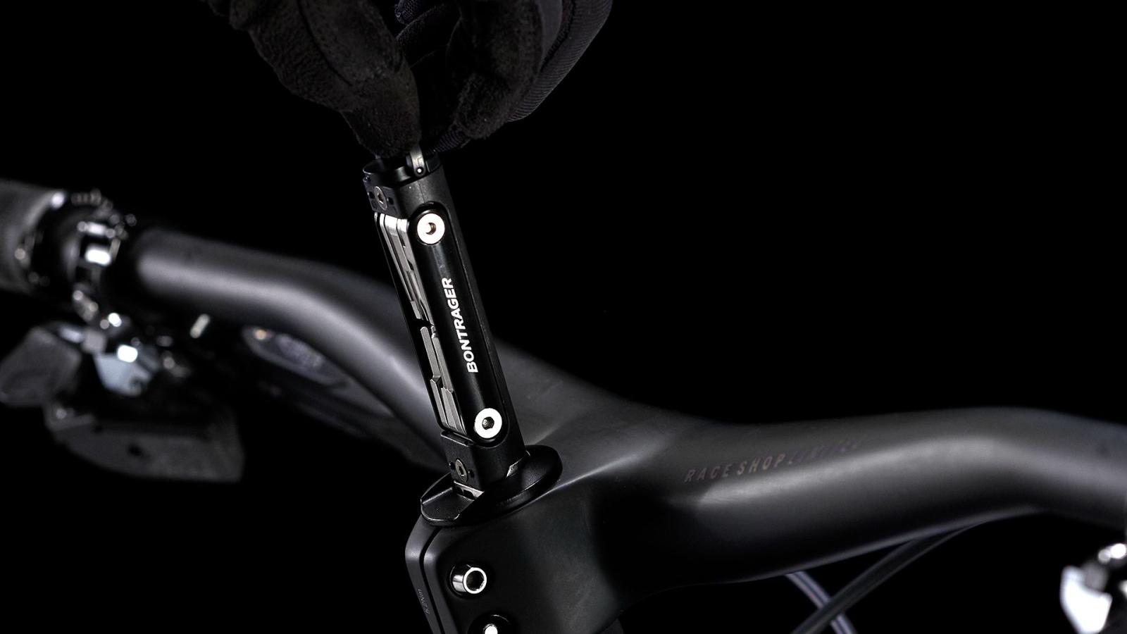 Einen Rahmen aus OCLV Mountain Carbon mit vierfach verstellbarem Mino Link an der unteren Dämpferaufnahme zur Feinanpassung der Rahmengeometrie und des Hebelverhältnisses des Fahrwerks. Eine gabel mit 130 mm Federweg sowie einen Fox Factory Float Hinterbaudämpfer mit 120 mm Federweg. Shimanos komplett neue XTR Di2 12-Gang-Schaltung, hydraulische Shimano XTR M9220 Scheibenbremsen, eine Bontrager Line Variosattelstütze und Bontrager Line Pro 30 Tubeless-Ready-Laufräder aus OCLV Carbon runden das hochwertige Ausstattungspaket ab.