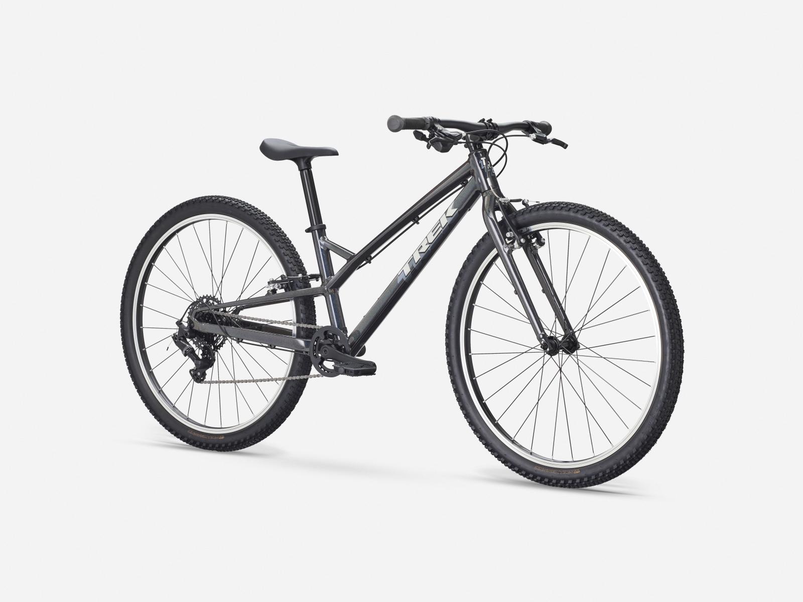 Einen Rahmen aus Alpha Silver Aluminium mit 26 Zoll großen Laufrädern und 2 Zoll breiten Reifen, die für Grip und Geschwindigkeit auf Asphalt konzipiert sind. Dazu gibt es eine speziell auf Kinderbedürfnisse zugeschnittene Ausstattung, wie etwa die intuitive 8-Gang-Schaltung von microSHIFT und unkomplizierte Felgenbremsen samt kindgerechten Bremshebeln.